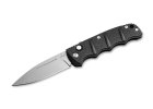 Čepel nože ve tvaru drop point má saténovou úpravu a je vyrobena z odolné oceli Nitro-V. U čepu má čepel na hřbetní straně zdrsněné vybrání, do kterého se palcem při práci můžete bezpečně opřít. Uzamčení do rámu nože je aretováno pojistkou backlock.